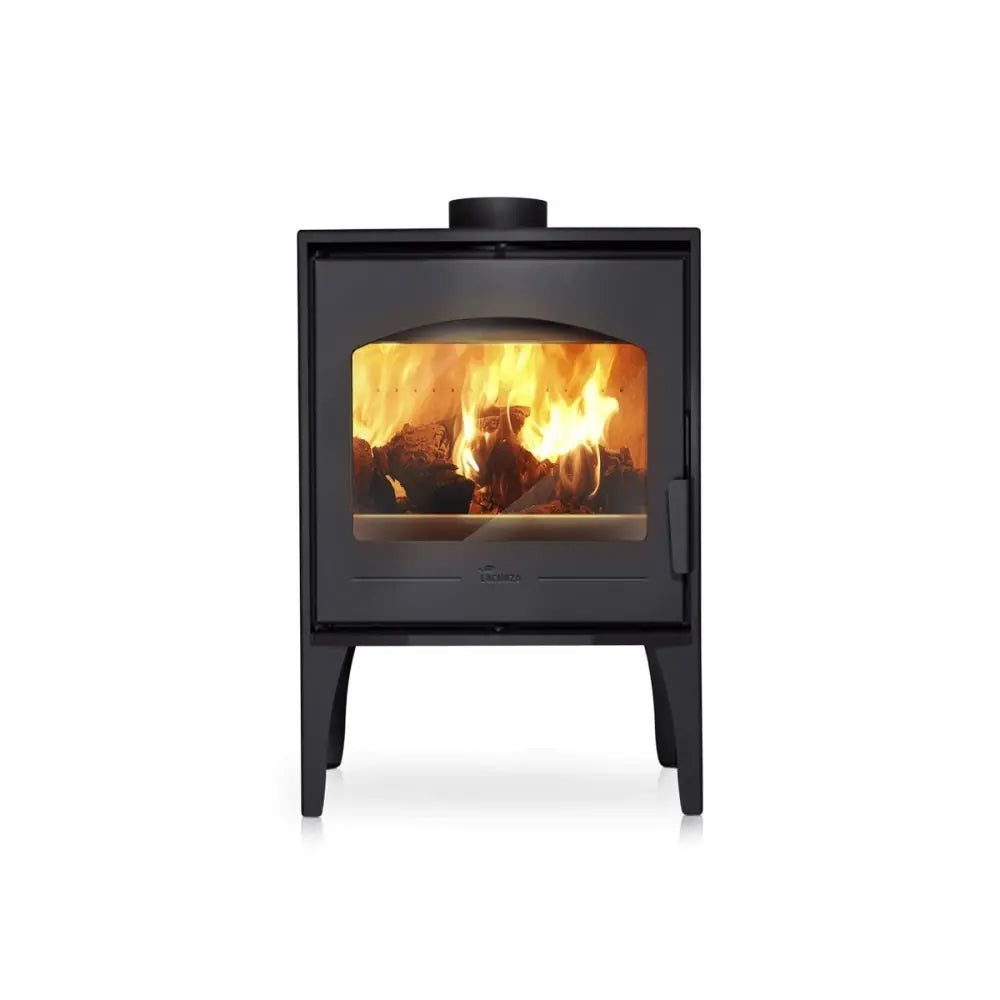 La estufa CALPE une respeto al medio ambiente y diseño. Su gran cristal atrapará la atención de tu salón. No podrás dejar de mirarla.