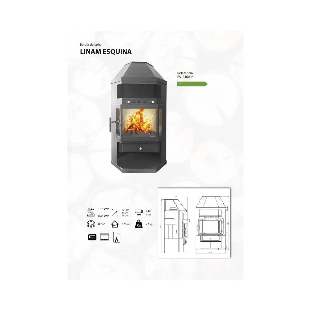 ESTUFA DE LEÑA LINAM ESQUINA CON LEÑERO INFERIOR EIDER BIOMASA