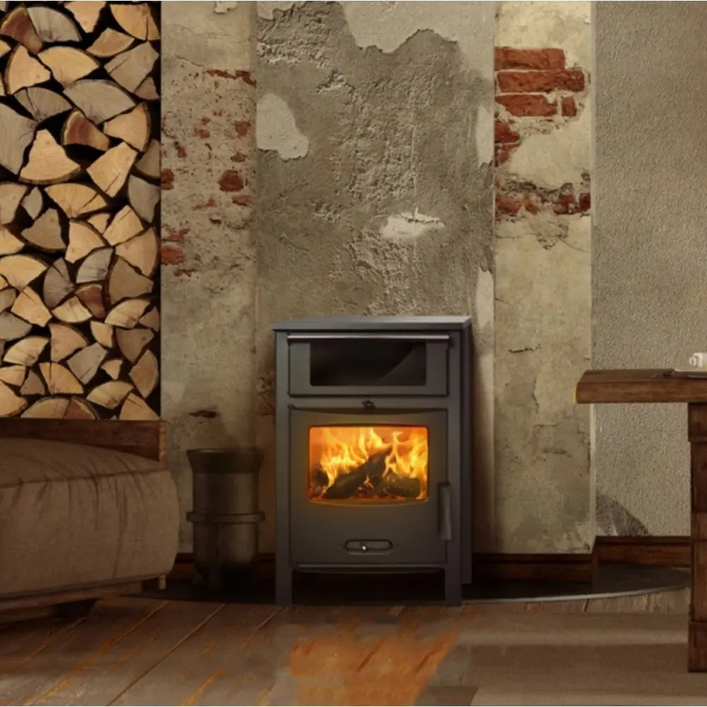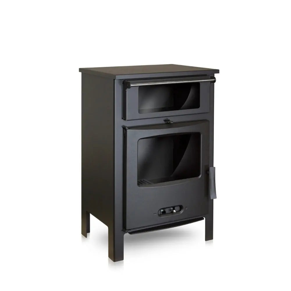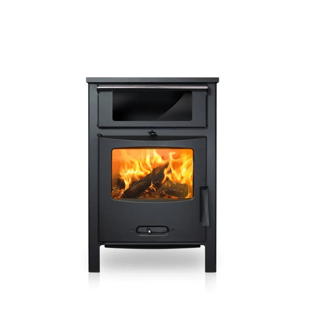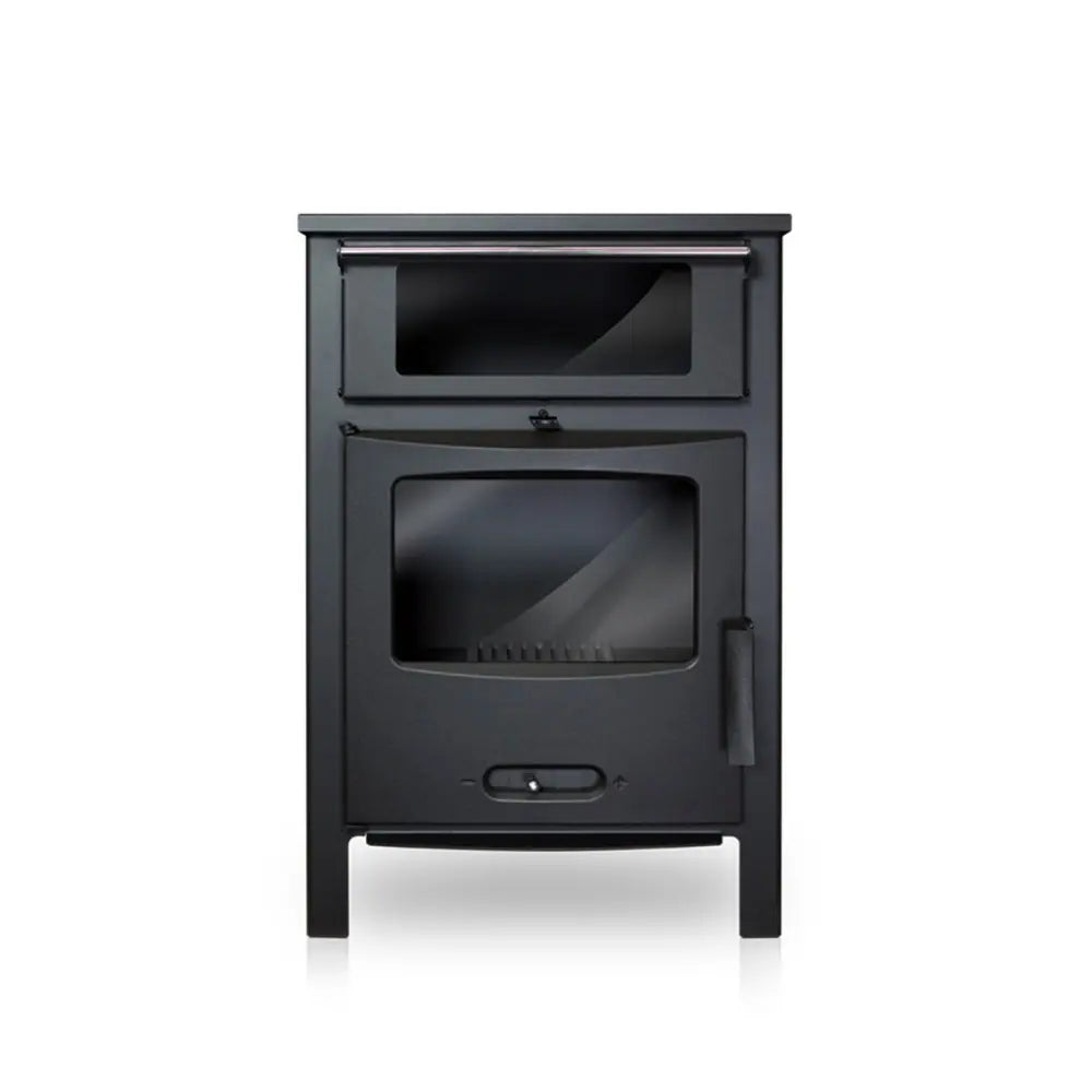 Esta estufa está fabricada en acero, contiene un cajón para la ceniza y presenta una visión alta del fuego. También cuenta con un cristal anti-manchas.